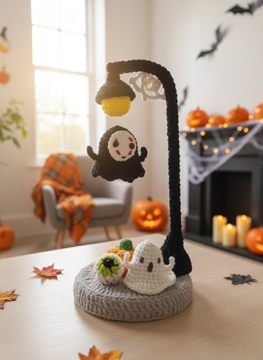 This 2-in-1 Crochet Pattern PDF includes both the Floating Ghost and Floating No-Face designs in one download. Choose your favorite character or create both to double the fun! Each design uses hidden magnets and clear fishing line to achieve the magical hovering effect, while pumpkins and eyeballs add extra spooky charm.